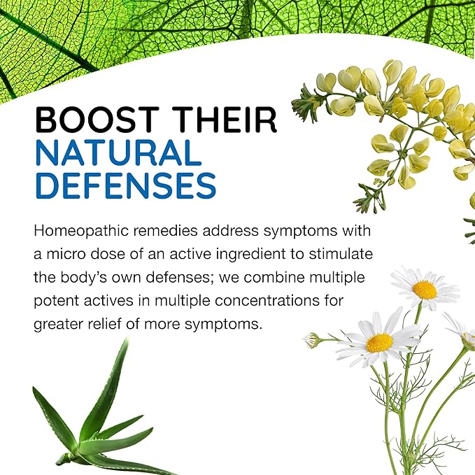 - BOOST THEIR NATURAL DEFENSES - Homeopathic remedies address symptoms with a micro dose of an active ingredient to stimulate the body’s defenses; we combine multiple potent actives in multiple concentrations for greater relief of more symptoms