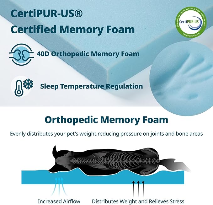 - WATERPROOF LINER: We use a 100% waterproof lining to protect the sponge and prevent liquid penetration, so that even if an accident happens, your pet can stay comfortable and the bed stays fresh.