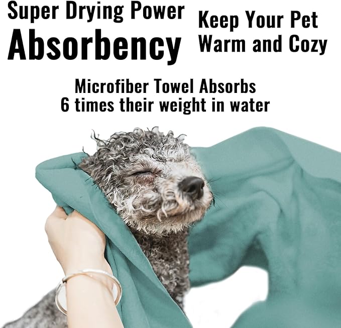 - ABSORBENT & FAST DRYING - Microfiber material provides super absorbent water ability of the towels which could absorb 6 times their weight in water makes quick drying. This pet grooming towels are perfect shower & bath supplies.