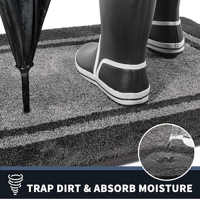 - TRAP DIRT & MOISTURE: Countless polyester fibers can effectively catch water and dirt off the bottom of shoes. Our dirt trapping doormat can keep indoor areas of your home or business clean, dry and safe, especially for the rainy, snowy, or muddy weather. For the best results, use the largest indoor door mats you have space for.