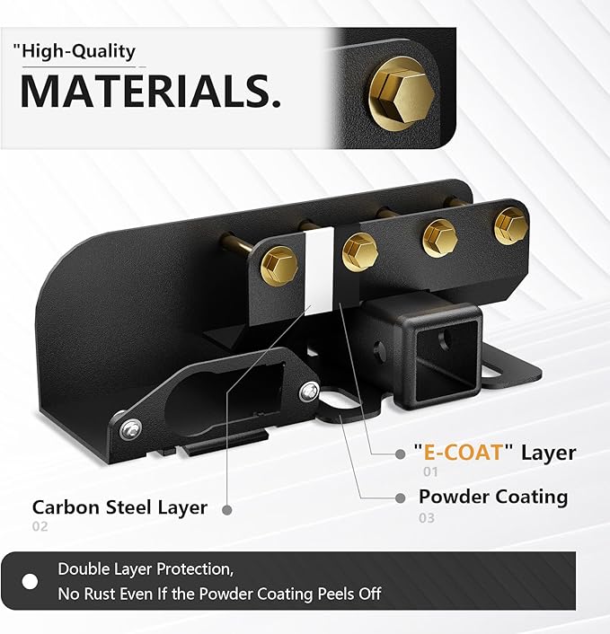 - 【Durable and Corrosion-Resistant】- To protect the hitch receiver from corrosion and damage, it undergoes a professional black coating treatment. This corrosion-resistant coating not only enhances its durability but also effectively withstands the impact of harsh weather conditions and road conditions, prolonging its lifespan.