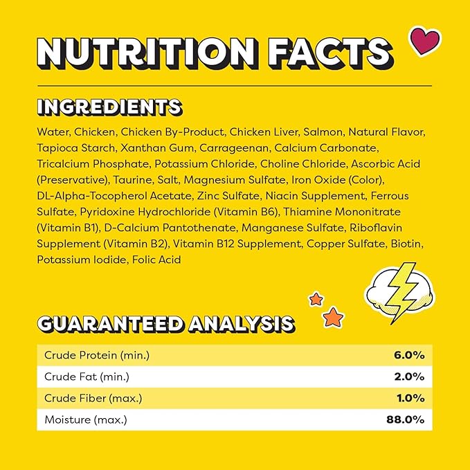 - Made with Real Chicken and Salmon: Your favorite feline will enjoy two irresistible flavors in one lickable spoon