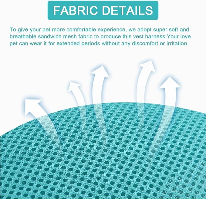 - Comfortable Harness - We use super soft and breathable mesh fabric to produce this harness so that your pet feel warm in winter and cool in summer. With upgraded 3-directions bust design, it can share the pressure on the neck and armpits to increase wearing comfort. The elastic bust strap also can buffer the impact to protect your pet when it tries to burst out;