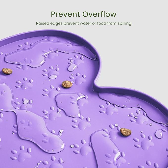 - Raised Edge - The high edge of this feeder mat keeps food and water within the tray and prevents spillage onto a clean floor. Keep your living space tidy and clean, say goodbye to messy floors, you just need to clean the dog bowl mat regularly.