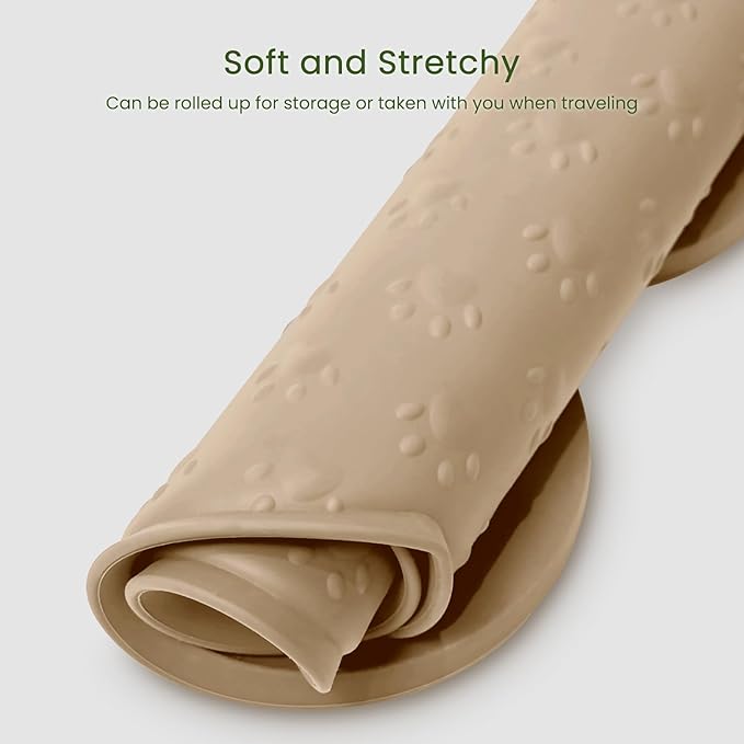 - Easy to Clean - The pet bowl tray pad is dishwasher safe, and this animal feeder mat is soft and stretchy and can be rolled up for storage or taken with you when traveling.