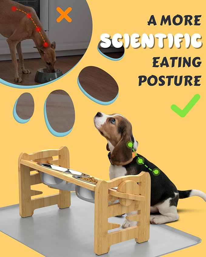 - Perfect Gift for Your Beloved Dog: Our elevated dog food bowls offer 6 height adjustments to accommodate dogs from puppy to senior stages. This thoughtful gift ensures that your furry companion will be delighted to receive such a practical and versatile dining solution! Tip: Before tilting the dog bowl, do not overfill it with food or water to avoid overflow.