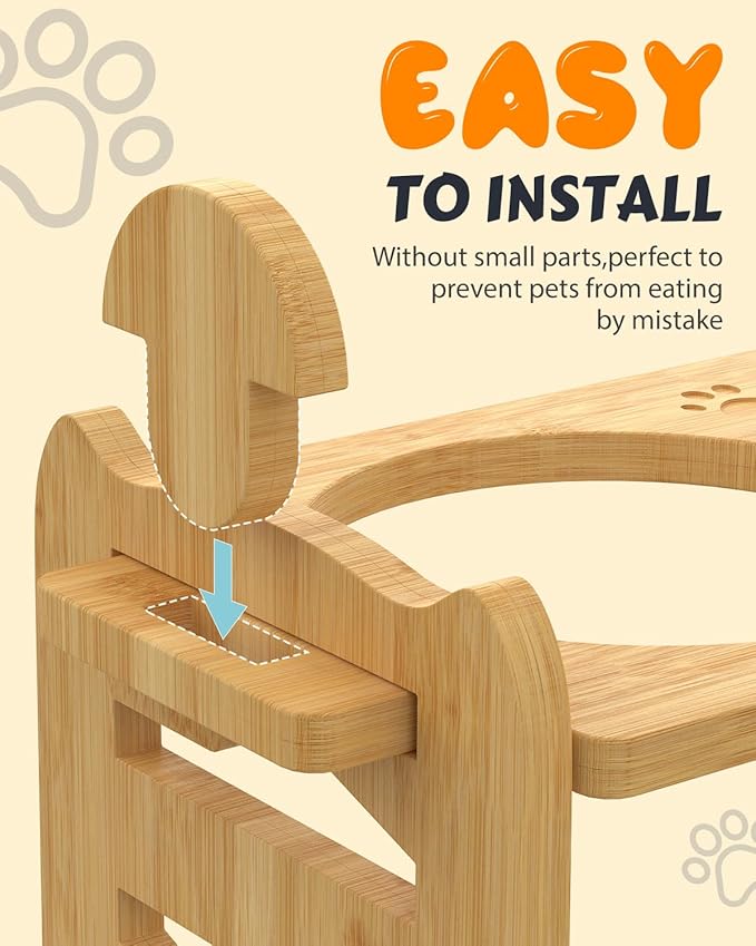 - Convenient Anti-slip Design: The elevated pet bowls feature anti-slip feet to keep them stable and prevent sliding, providing floor protection. The dog feeder station is easy to disassemble, making it convenient to move around. This space-saving design is also cost-effective.