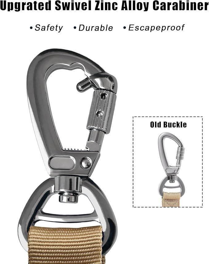 Hotsky Tactical Dog Leash Heavy Duty for Medium Large Dogs That Pull,4-6Ft Strong Bungee Shock Absorbing No Pull Dog Leash with Padded Double Handle and Car Seatbelt,Khaki