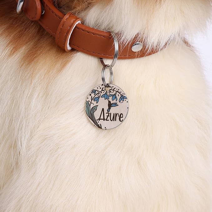Colorful Dog Tags Personalized, Engraved Dog Tags with Colored Printing for Pets, Dog Name tag with deep Engraving, Custom pet ID Tags, Customizable cat Collar Holder tag (Snowdrop)