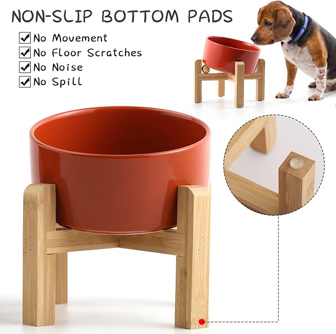Petygooing Elevated/Raised 15°Slanted Ceramic Dog Bowl for Small and Medium Breeds, Tilted Anti Slip Pet Feeding Bowl,Food Water Dish with Stand for Cats and Dogs (28 OZ/3.6 Cups) Rust Red