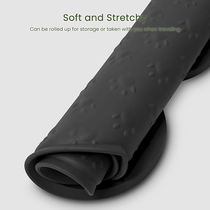 - Easy to Clean - The pet bowl tray pad is dishwasher safe, and this animal feeder mat is soft and stretchy and can be rolled up for storage or taken with you when traveling.