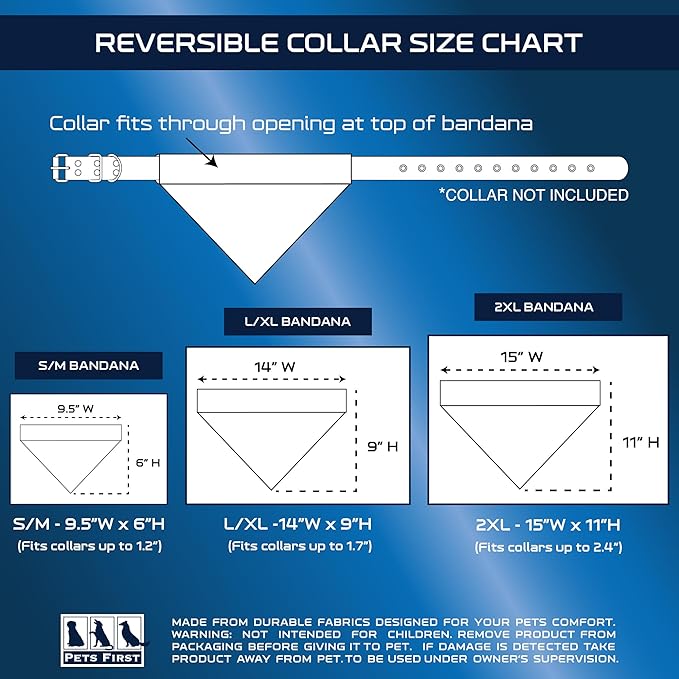 - SIZE - Available in 2 SIZES; Small/Medium Bandana: 9.5" x 6.5". & Large/X-Large Bandana: 14.5" x 9.5". Available in 50+ COLLEGIATE TEAMS, Choose your team and click ADD TO CART NOW!