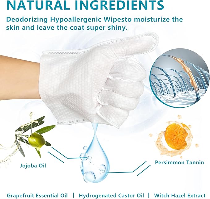 - Versatile Cleaning: The textured surface of the gloves ensures thorough cleaning Face, Ears, Back, Belly, Paws, Butt and body, removing dirt, dander, and odors effectively. Use them for daily grooming, quick clean-ups after walks, or to freshen up your pet between baths.