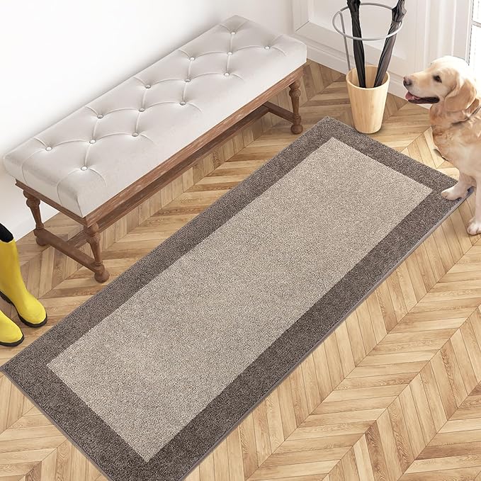 PURRUGS Dirt Trapping Door Mat 24" x 60", Non-Slip/Skid Machine Washable Entryway Rug, Shoes Scraper, Throw Rug, Super Absorbent Area Rug for Muddy Wet Shoes and Paws, Beige & Grayish Brown