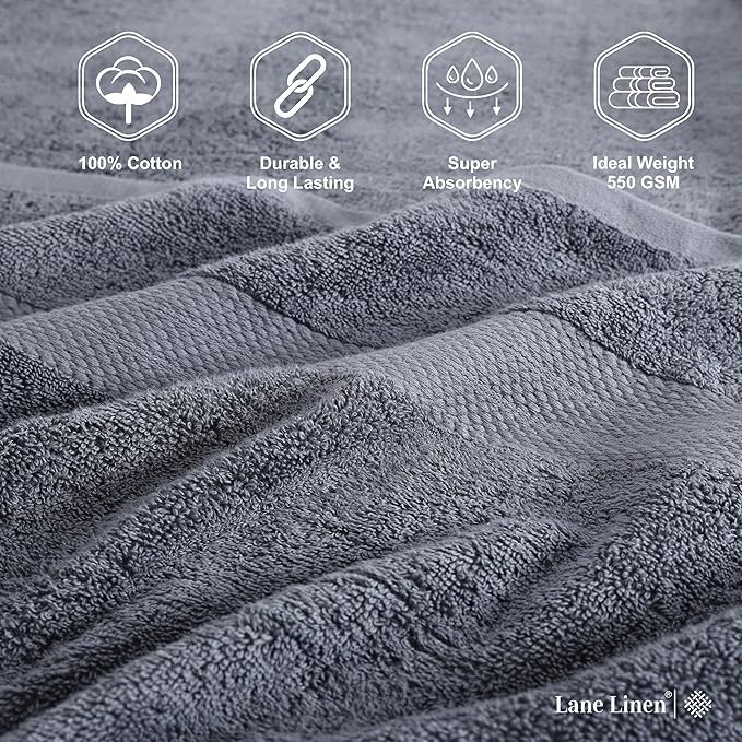 LANE LINEN 100% Cotton Luxury Bath Towel Set - 16 Pieces - Ring Spun, Super Soft & Highly Absorbent - 4 Bath, 8 Washcloths, 4 Hand Towels for Bathroom - Holds Well After Multiple Washes - Cool Grey