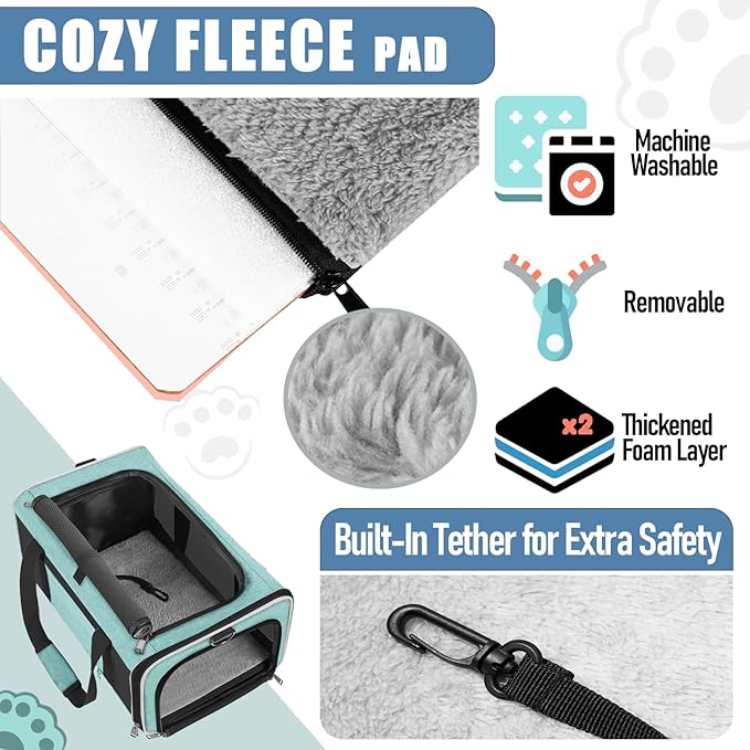 Soft Cat Carrier Large Cat 20 lbs/Kitty Cat Travel Crate for Pet Top Load/Small Dog Sturdy Transport Fabric Carry Bag 10 Pounds/Yorkie Kennel with Pocket Teal Aqua