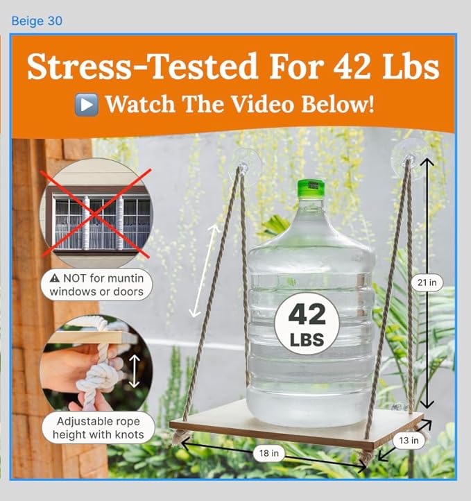 - Strong & Sturdy Frame: Built with a solid pine wood board and thick cotton ropes, and enhanced with 4 strong suction cups capable of supporting up to 40 lbs, our cat window seat guarantees durability and a security while your feline friend enjoys the view.