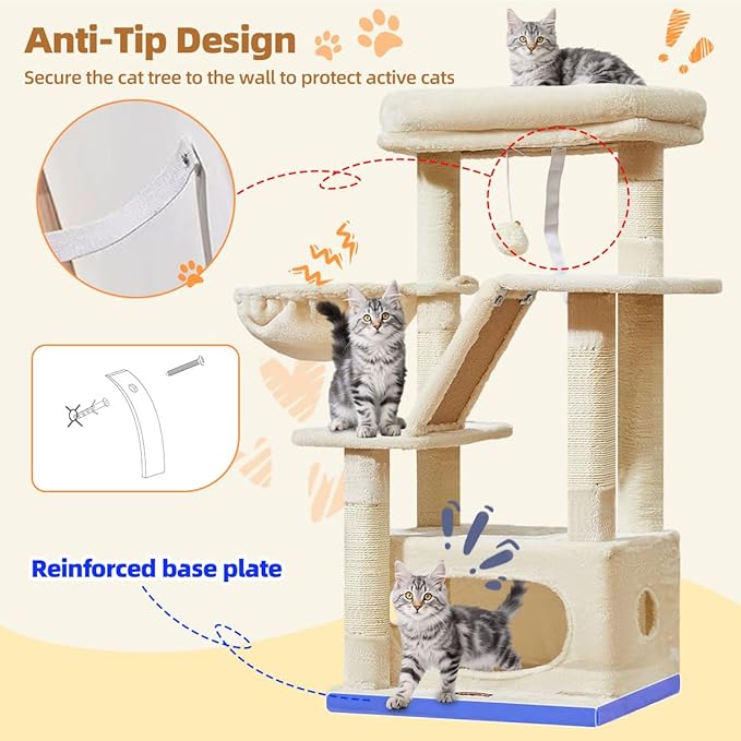 - Quality Materials, Lasting Joy: Made with quality particleboard, reinforced with battens at the bottom, secured by an anti-tip kit, covered with durable plush, and fitted with wear-resistant sisal, this cat tree is sure to bring lasting joy to your BFF