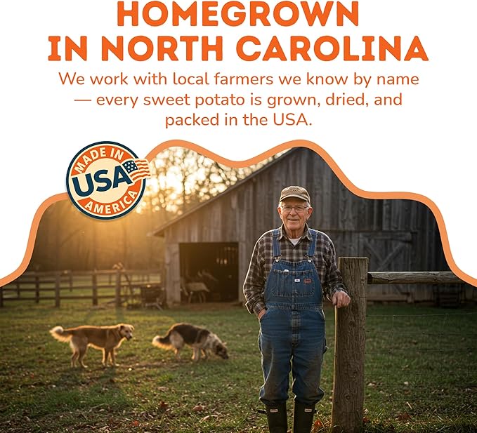 - PROUDLY MADE IN THE USA - Every sweet potato that goes into our treats are grown on a family farm in North Carolina, ensuring the quality and freshness of every single one of our treats.