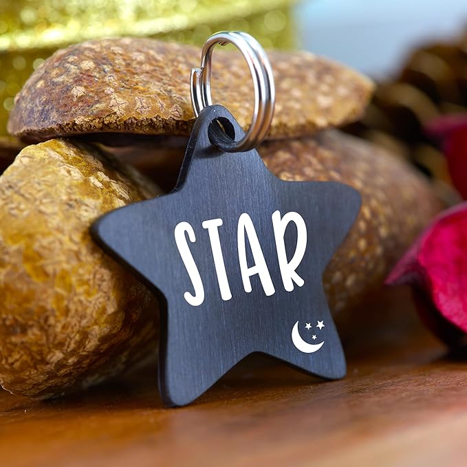 Ultra Joys Cat ID Tag Personalized Pet Tags, Durable Stainless Steel Small Pet Mini Dog Cat Tag Lightweight - Star Tag in Black