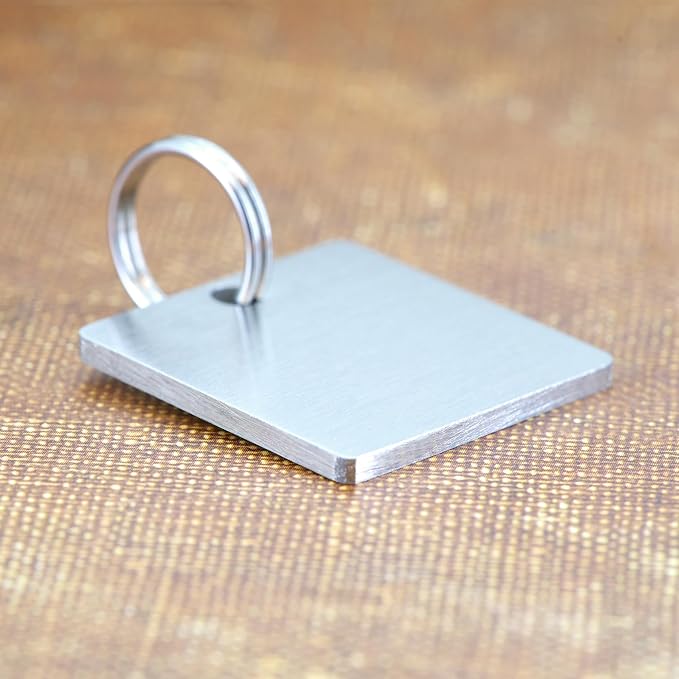 - Perfect Pet Tags for Cats & Small Dogs: Specifically designed for small pets, our pet collar tags are thick and durable yet lightweight. Each name tag comes with two sizes of stainless steel split rings for easy attachment to your pet's collar, ensuring a secure fit without adding unnecessary weight.