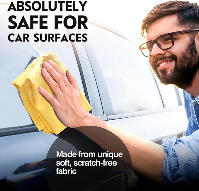 - 【Multipurpose & Easy to use】Our shammy towel for car care is not only perfect for drying cars, but also suitable for restoring shine on all types of surfaces, such as tiles, mirrors, glass, countertops, etc. Just wipe it gently, you can say goodbye to water stains, dust, and is also safe for pet hair drying!