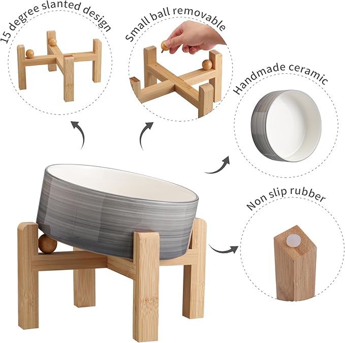 - PERFECT for Medium & Large DOGs - these ceramic pet dishes are perfect for medium and Large sized dog bowls which could provides food or water all day without having to refill constantly. cute & Modern Addggo pet bowl with a bamboo wood stand with a non-slip base, suitable for every home style, especially boho home decor.