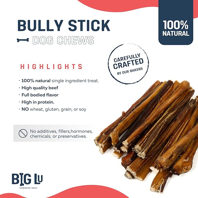 Big Lu - 6” Regular Bully Sticks, 12 Count, 100% Grass-Fed Beef Chews, Fully Digestible, Long-Lasting Treats for Aggressive Chewers, Natural Single-Ingredient Chews for All Dog Breeds