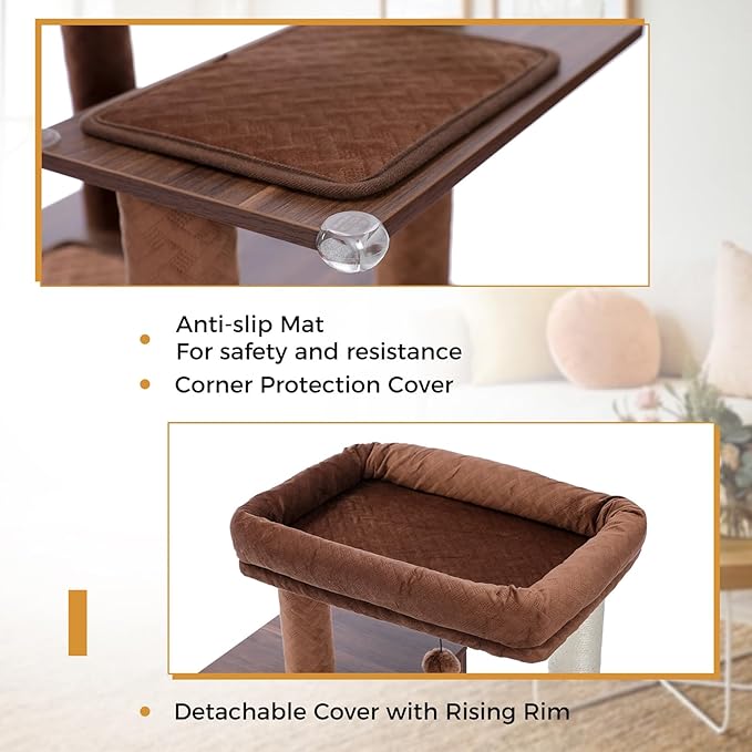 - Superior Stability & Enhanced Safety: Built from high-density wood for lasting durability; the cat climbing frame stands securely on a robust cabinet base measuring 20.8 inches long, 19.7 inches wide, and 17.9 inches high.