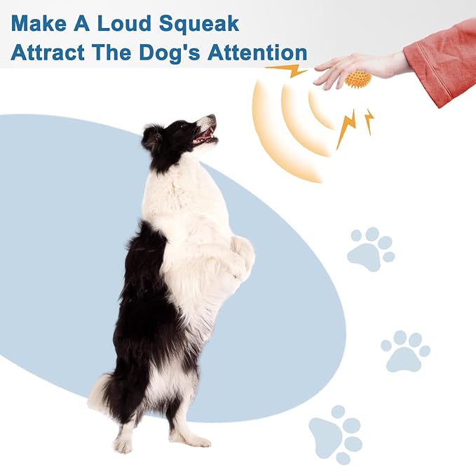 - SQUEAKY BALLS FOR DOGS: Inside each spikey dog ball is a squeaky ball that adds an extra layer of fun and excitement for your furry friend, no choking hazard when chewing or playing. When your dog bites, spiky dog balls will continue to make a cute sound, not too loud, but still get dogs’ attention, they'll love the sound and the challenge of trying to get it out of the ball.