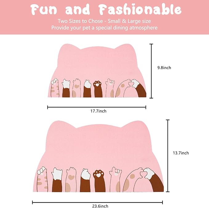 - 【Fun & Fashionable Print】These cat eating mats come in a variety of different shape and printing design, which allow you to choose a design that matches your home decoration and added a touch of personality and uniqueness to your pet's feeding area