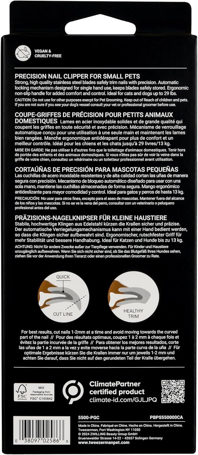 Tweezerman Small Nail Clippers for Dogs & Cats, Manual Professional Dog & Cat Nail Trimmer with Ergonomic Handle