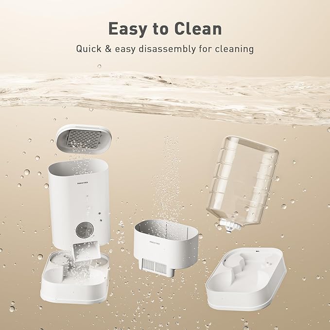 - 𝐄𝐚𝐬𝐲 𝐭𝐨 𝐃𝐞𝐭𝐚𝐜𝐡 𝐚𝐧𝐝 𝐂𝐥𝐞𝐚𝐧 - The cat feeder and water dispenser are designed to be easy to clean and maintain, ensuring that your pet's food and water dishes are always clean. This helps to prevent digestive issues and keep your pet healthy and happy