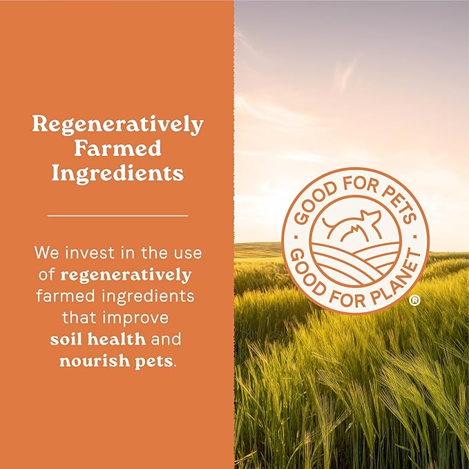 - GOOD FOR PETS. GOOD FOR PLANET: We source regenerative ingredients from US farmers improve soil health and nourish dogs of all sizes, ages, and breeds. Our sustainable packaging is made with recycled materials.