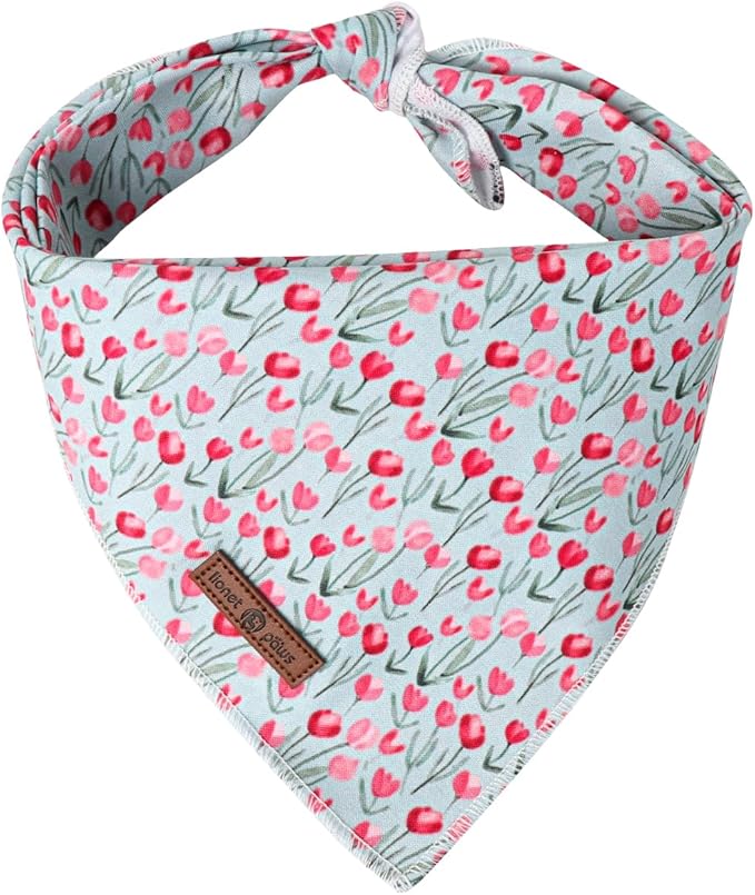 Lionet Paws Cotton Dog Bandanas,Tulips Flower Comfortable Dog Bandana Bibs Scarf Washable Dogs Kerchief,Birthday Scarves for Medium Large Dogs Pets