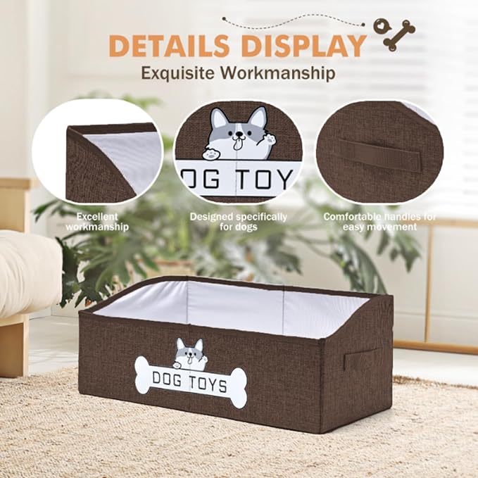 Dog Toy Basket, Specially Designed for Dog Toy Storage, Collapsible Dog Toy Box with Handle,Perfect for Storing Pet Toys and Accessories (Brown)