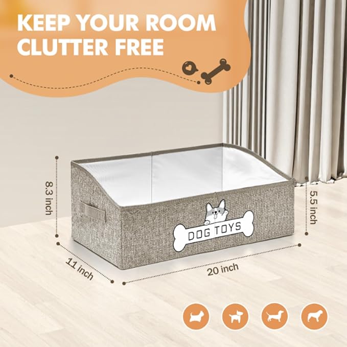 - 【Dog Toy Basket Large Size】 The size of the pet toy basket is 20 (L) * 11 (W) * 8.3 (H) inches. It has enough space to store pet toys, dog food and other pet supplies to keep the room tidy.