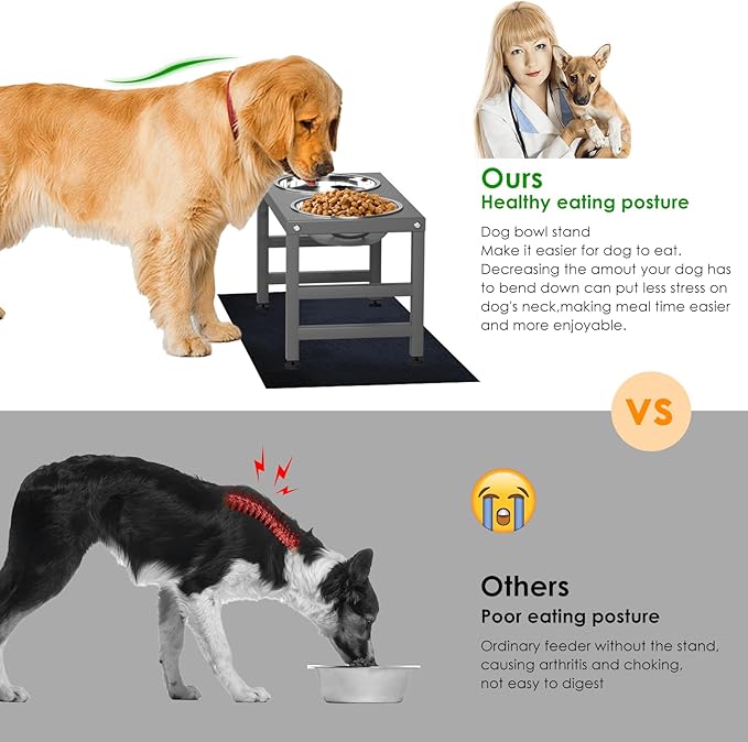 - 【KEEP YOUR FLOOR CLEAN】- The ADENGL raised dog bowl comes with a splash-proof mat that can be placed underneath the bowl rack, spilled food and water can be well collected by the mat to keep the feeding area dry and tidy. Perfect for messy eaters