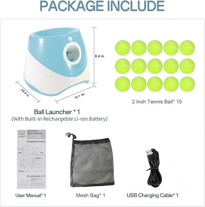 - More Tennis Balls: Package includes 15 pcs 2-inch mini tennis balls and a mesh bag, it can be used by the ball launcher for a long time. And it is convenient to put the tennis balls inside mesh bag or taking out for outdoor play, it is perfect. Please search for Asin# B0B7JBMNJ7, it is the tennis ball for this dog ball launcher.