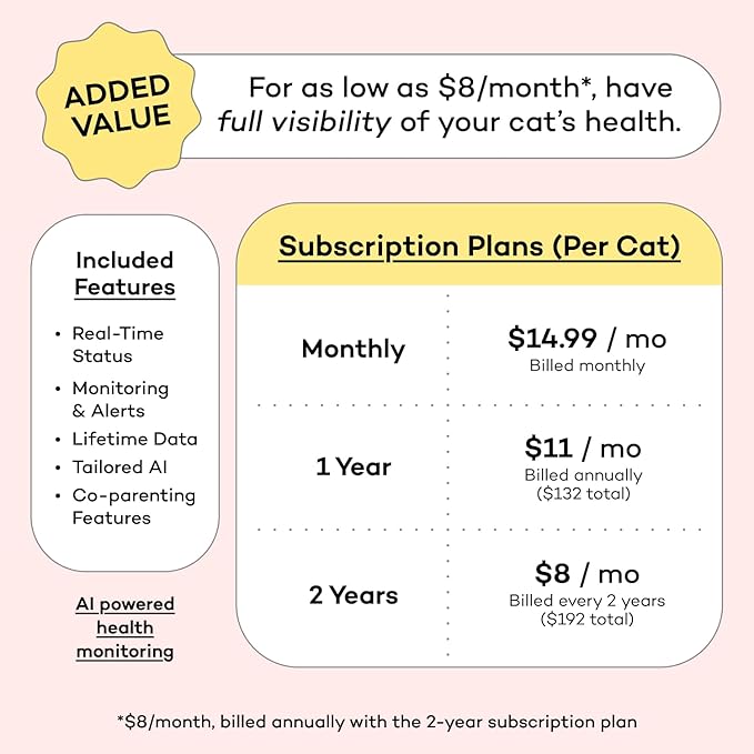 - 💡 2-WEEK SMART BASELINE LEARNS YOUR CAT’S “NORMAL” – Unlike generic pet trackers, Catlog’s AI uses data points gathered from 40,000 cats to study your cat’s individual patterns for 14 days to establish a personalized health baseline. After that, the app alerts you to meaningful deviations — higher body temp, reduced activity, restless sleep — that could indicate the beginning of serious health conditions.