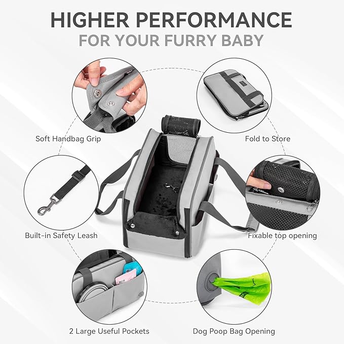 - [Thoughtful Features for Every Journey] Convenience meets functionality with our cat carrier's design. A portable padding handle makes transportation a breeze, while 2 pockets offer ample storage for pet essentials. When not in use, the small dog car seat effortlessly folds down for compact storage, ensuring it's ready for your next adventure.
