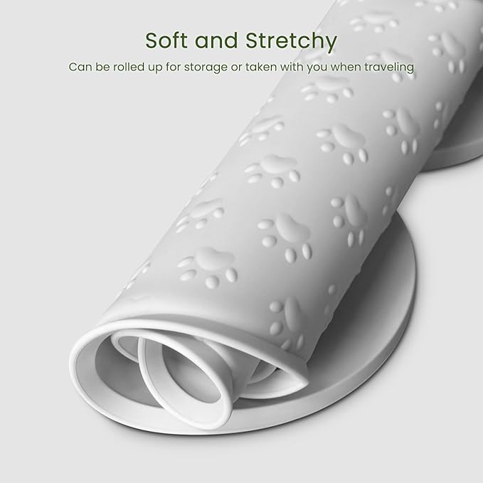 - Easy to Clean - The pet bowl tray pad is dishwasher safe, and this animal feeder mat is soft and stretchy and can be rolled up for storage or taken with you when traveling.