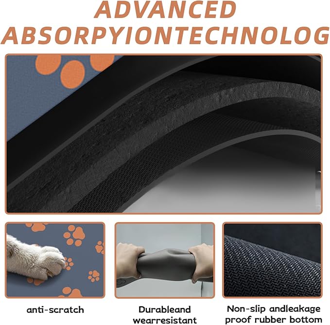 - ANTI-SLIP AND ANTI-PENETRATION: The super absorbent ability of this Dog Mat for Food and Water ensures that water stains will not penetrate the floor, avoiding wear and tear on the floor. The non-slip design on the back prevents the feeding mat from being carried around by your puppy, making your home environment more tidy