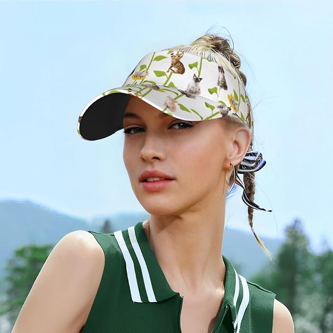Cute Cat Sport Sun Visor Hats Cute Animal Sun Hat Empty Top Baseball Cap for Outdoor Cat Baseball Hats Cap