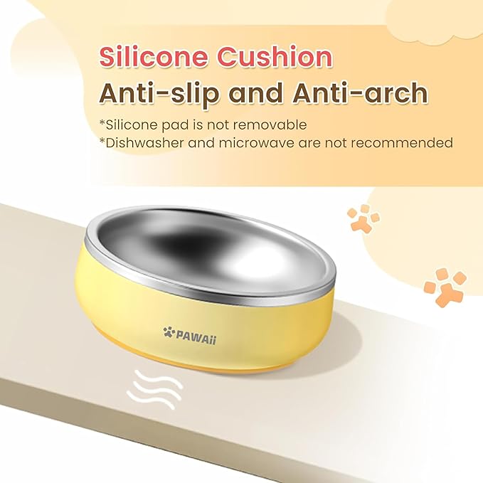 - š šš«ššš³š ššØ šš„ššš§: Pawaii stainless steel dog bowl repels oil, does not hide dirt, and can be cleaned by simple flushing. Note that unlike the 34 oz. and 68 oz. bowls, the non-slip mat is not removable and is therefore not dishwasher or microwave safe.