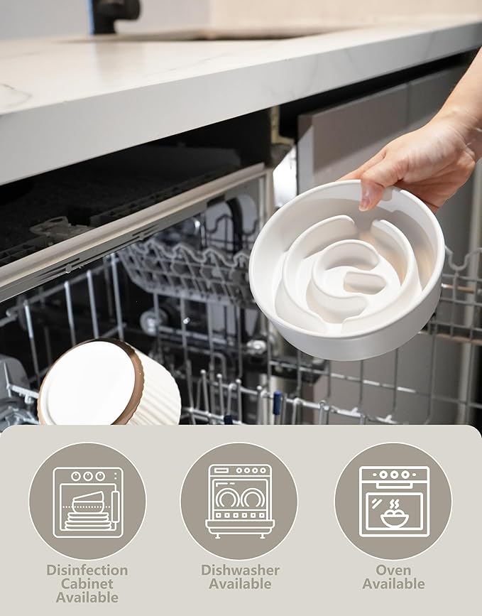 - 【Easy to Clean】 Dishwasher available—— Our ceramic slow feeder dog/cat bowls are ideal for both dry and wet food, easy to clean and dishwasher safe.