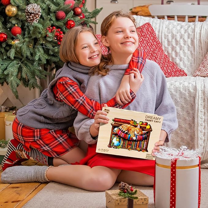 - Tabby Cat Wooden Puzzle: This wooden jigsaw puzzle takes inspiration from nature, featuring irregularly shaped animal pieces. The original hand-drawn designs not only provide a puzzle-solving experience but also serve as unique home décor