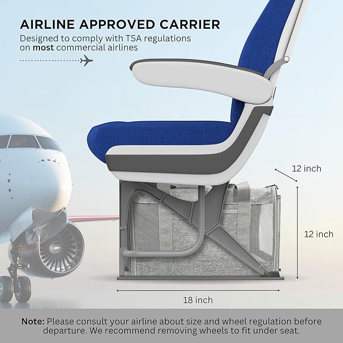 - ✅ Airline Travel Ready - Verify Dimensions First: This pet carrier meets under-seat requirements for most major airlines, but seat dimensions vary significantly with wheels attached. Always measure your airline's under-seat space and compare to our dimensions before purchasing to avoid travel complications.