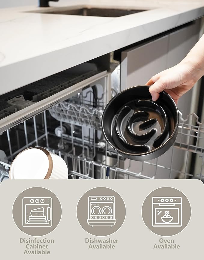 - 【Easy to Clean】 Dishwasher available—— Our ceramic slow feeder dog/cat bowls are ideal for both dry and wet food, easy to clean and dishwasher safe.