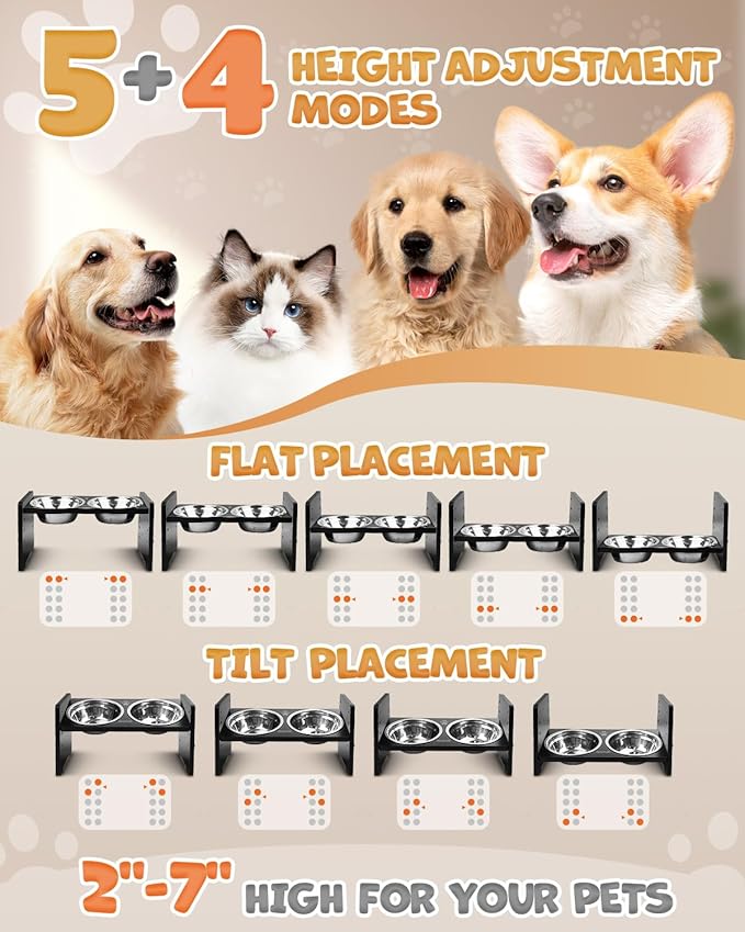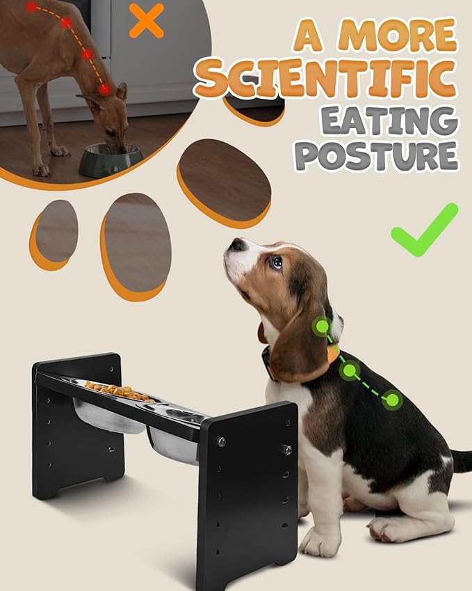 - Perfect Gift for Your Beloved Dog: Our elevated dog food bowls offer 6 height adjustments to accommodate dogs from puppy to senior stages. This thoughtful gift ensures that your furry companion will be delighted to receive such a practical and versatile dining solution! Tip: Before tilting the dog bowl, do not overfill it with food or water to avoid overflow.